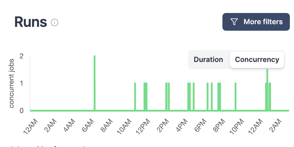 - Workflow timeline UI showing each task as a separate entry with duration bars.