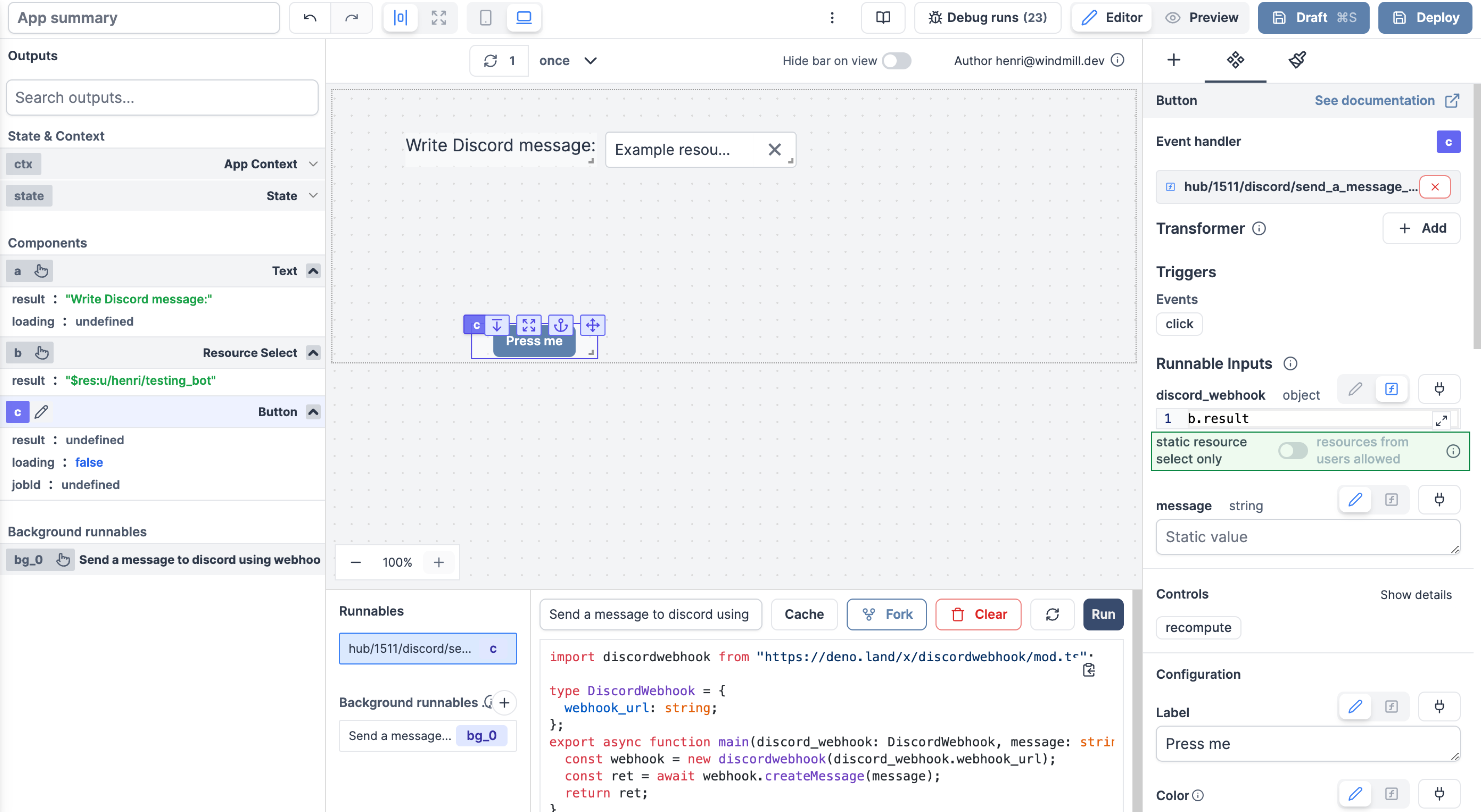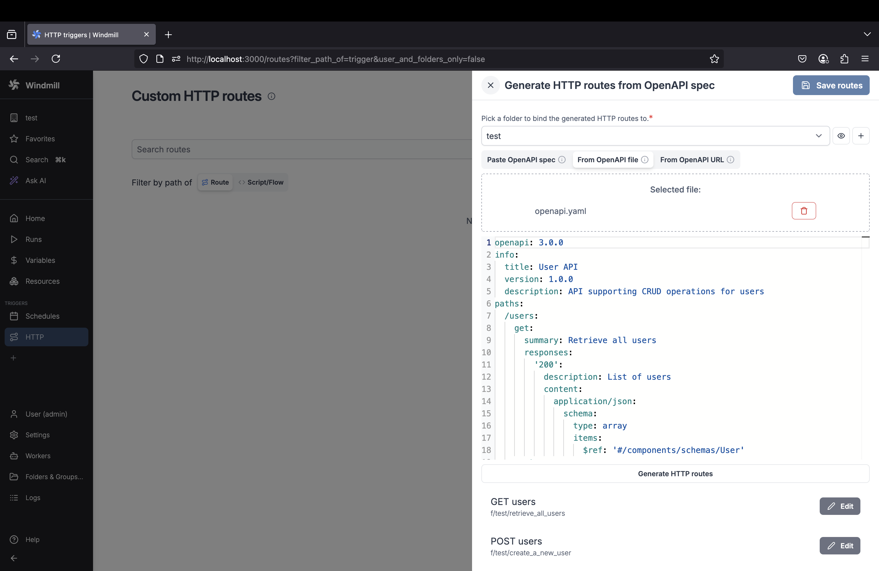 - taskScript() and taskFlow() to dispatch to existing Windmill scripts and flows by path.