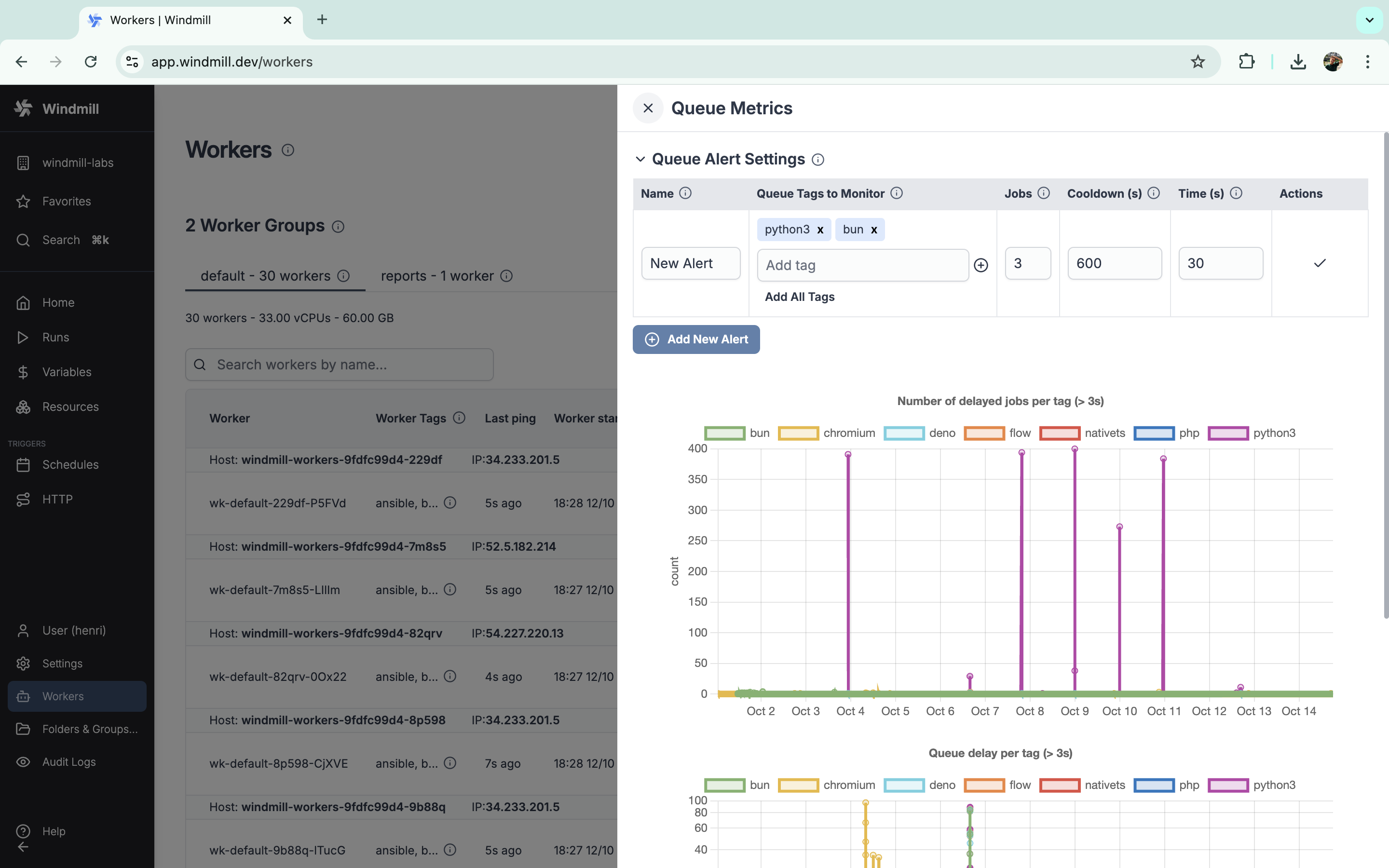 - Job retention health: compares oldest completed job age to retention_period_secs with green/yellow/red status.